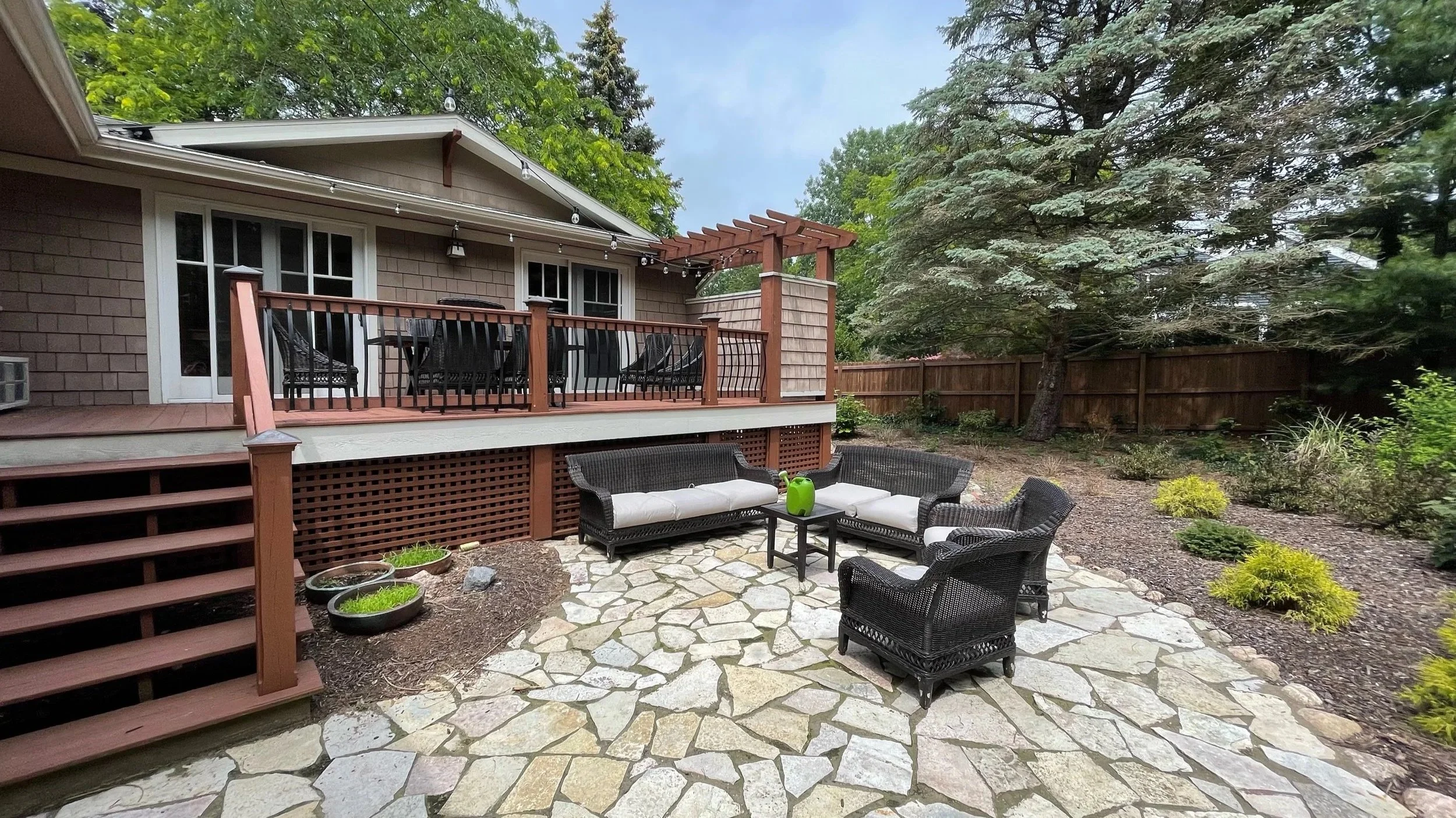 Working through the design process led us down some fun paths. Once the conceptual plan was completed, we had existing site materials to deal with. How could these be re-purposed? While we considered options, the client learned that the neighborhood HOA needed some stone for a community project. They were happy to donate their patio flagstone for the cause knowing instead of being discarded, it would fill a need. Because the site had some significant elevational changes, the design called for several retaining walls. We designed some of the walls to be gabion walls (wire cages that are filled with stone). This provided a new home for the fieldstone on site as well as a natural habitat for small animals and plants.
